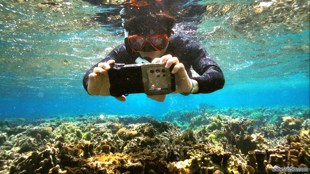 环保工作者使用三星Galaxy智能手机进行珊瑚礁保护拍摄